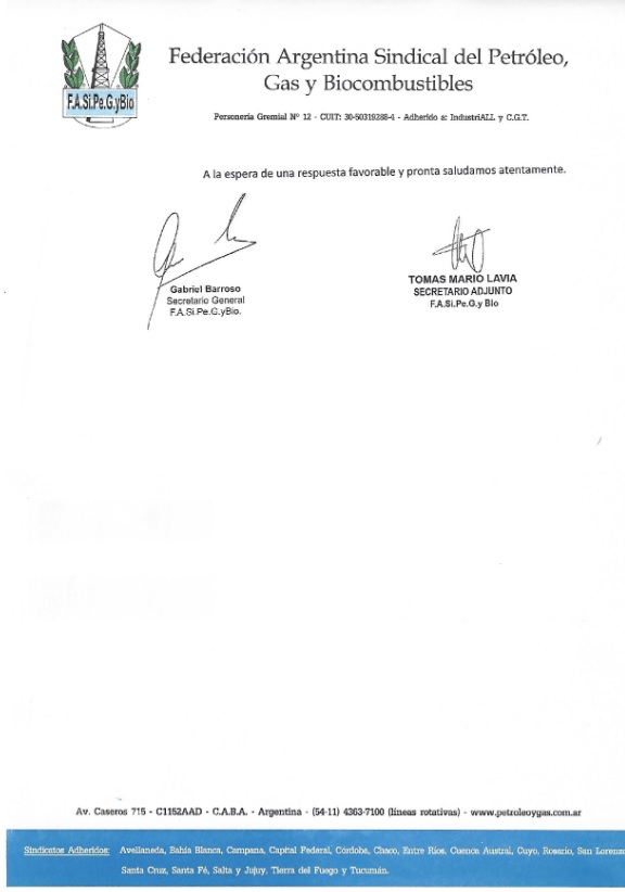 Desde la Federación Argentina Sindical del Petróleo, Gas y Biocombustibles (FASIPeGyBio) realizó de manera formal el pedido de una convocatoria