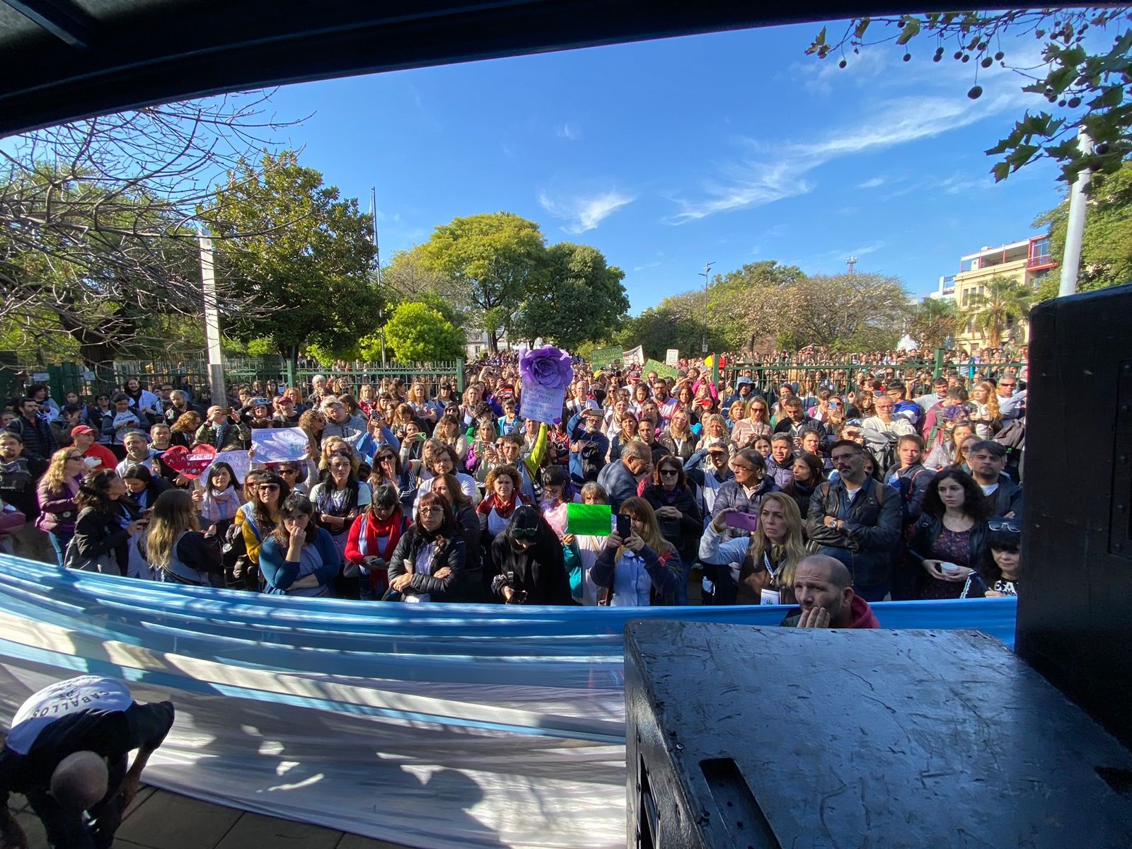Los docentes porteños en la jornada de hoy se concentraron y manifestaron en Plaza Armenia en repudio al ingreso de la policía a la escuela, en horario de clases y con los niños adentro.