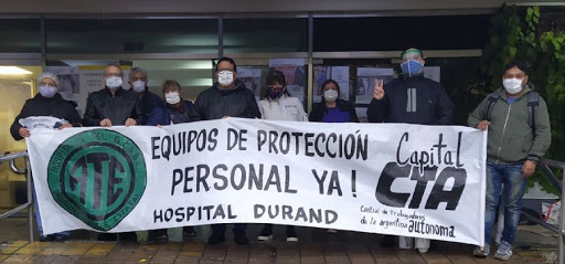 “Lxs trabajadorxs de la salud nos estamos enfermando y muriendo por coronavirus, gracias a la improvisación, el des manejo, la falta de protocolos de atención adecuados y la escasez de personal”, denunciaron los trabajadores del Durand.