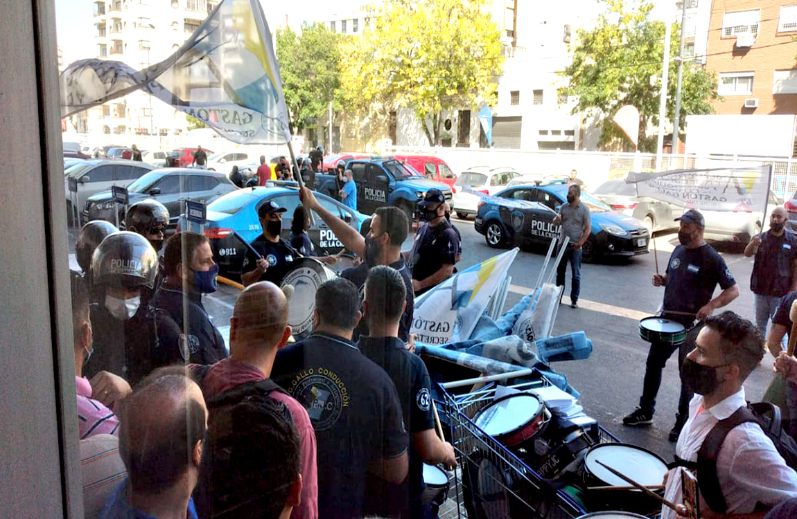 En las manifestaciones que realizaron los trabajadores de la sucursal, apareció el despliegue de un extraño operativo policial, con fuerte armamento y cerramientos en los portones.