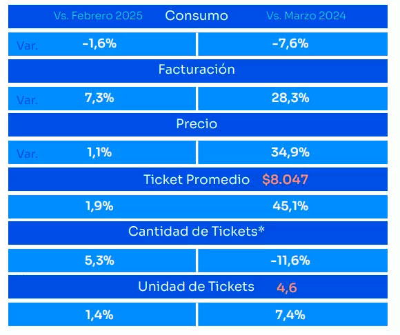 Lejos de abandonar del todo el consumo, los hogares modificaron sus hábitos: compran con más frecuencia—la cantidad de tickets creció un 5,3 %—y llenan más el carrito en cada visita—las unidades por ticket subieron un 7,4 %.
