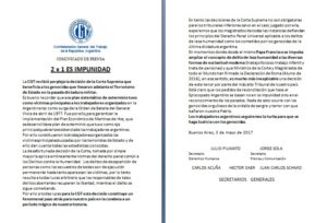 La CGT manifiesto  su disconformidad y desacuerdo a la decisión de la corte Suprema de Justicia de beneficiar a los crímenes de lesa Humanidad por el beneficio del 2×1.