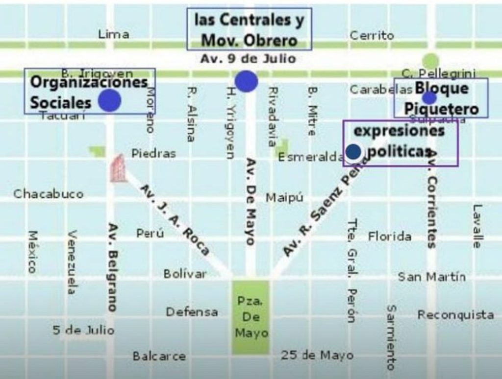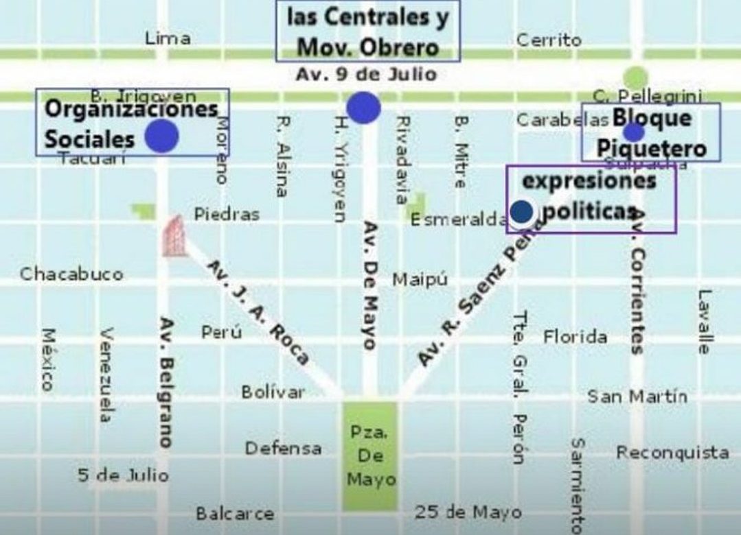 - 🚶♂️🚶♀️ Av. de Mayo y Av. 9 de Julio: Columnas de las CTA y el resto del movimiento obrero.