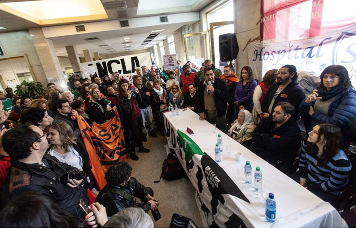 “Acá hay un objetivo principal que es destruir el hospital público y al Hospital Posadas. Porque el Hospital Posadas como parte del Estado Nacional sigue siendo la demostración cabal de que es posible reconstruir un sistema nacional de salud y no fragmentarlo en provincias y municipios”, gritó Hugo “Cachorro” Godoy en Conferencia desde el hall del nosocomio.