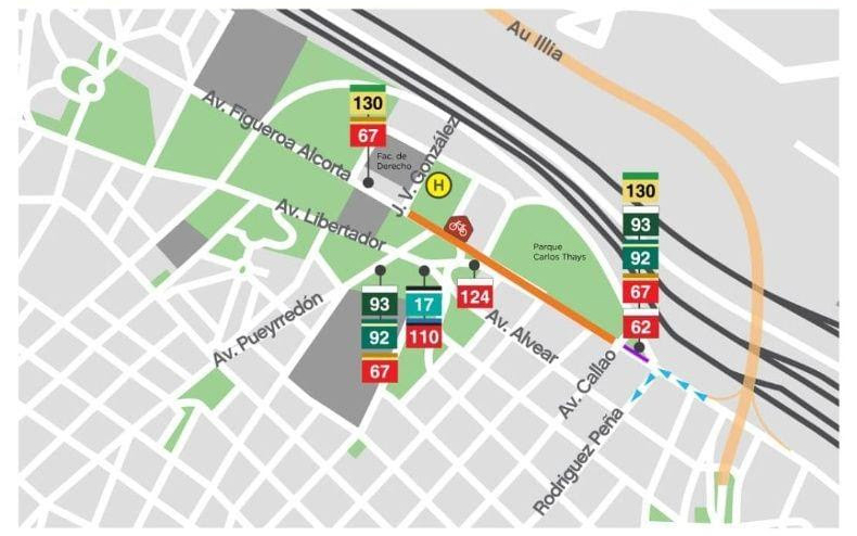 También cambiará el recorrido y las paradas de algunos colectivos: 17, 62, 67, 92, 93, 110, 124 y 130. Pero el tránsito de autos, colectivos y subte no es lo único que se modificará en estos días: el tramo de la bicisenda y la estación de bicicletas de la Ciudad de Buenos Aires entre J. V. González y Callao estará cerrada hasta el domingo a las 22.