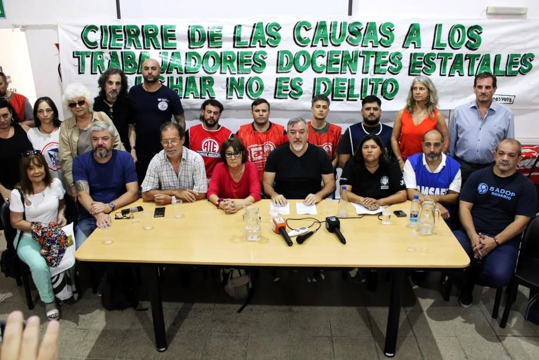 Un importante arco de referentes sindicales, políticos y sociales se congregó en Santa Fe para denunciar la criminalización de la protesta social y exigir el cierre de las causas judiciales contra docentes y trabajadores estatales que participaron en manifestaciones contra la reforma previsional.