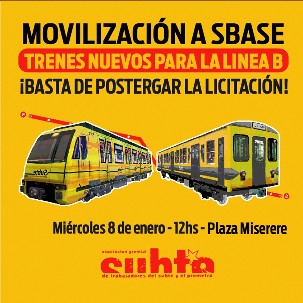 Los trabajadores del subte y el premetro, agremiados en la AGTSyP anunciaron una movilización para este miércoles 8 de enero a las 12, en Plaza Miserere, en demanda de nuevas formaciones para la Línea B. La protesta está dirigida a SBASE, con el lema «Basta de postergar la licitación».