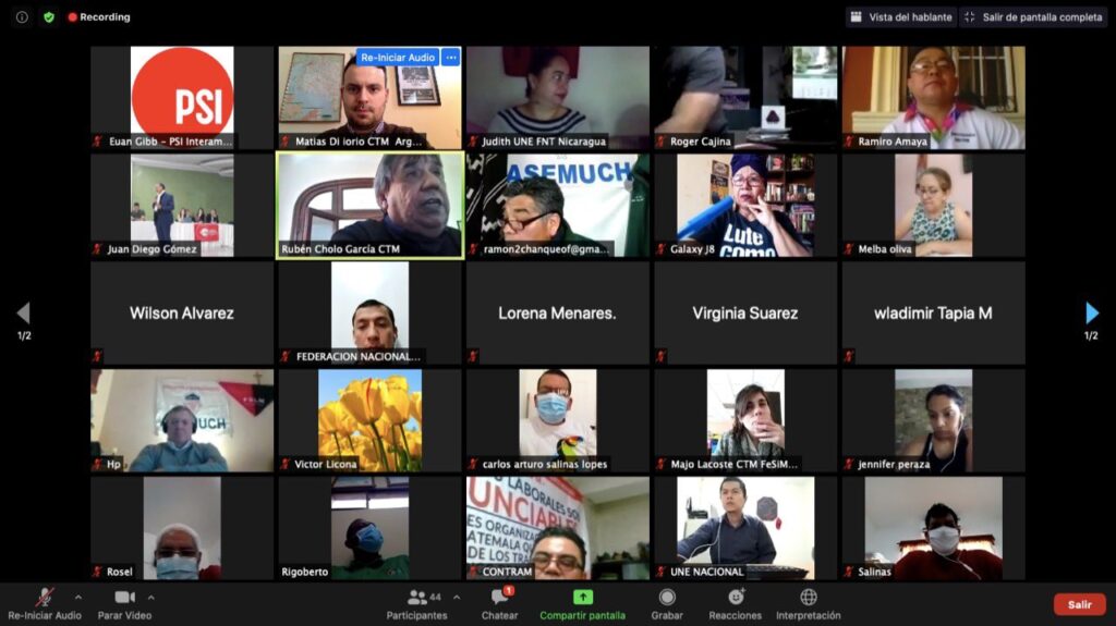 El encuentro tenía como consignas defender los derechos, fortalecer los sindicatos, globalizar la lucha. «La acción sindical municipal en el contexto de la pandemia global del Covid19.»