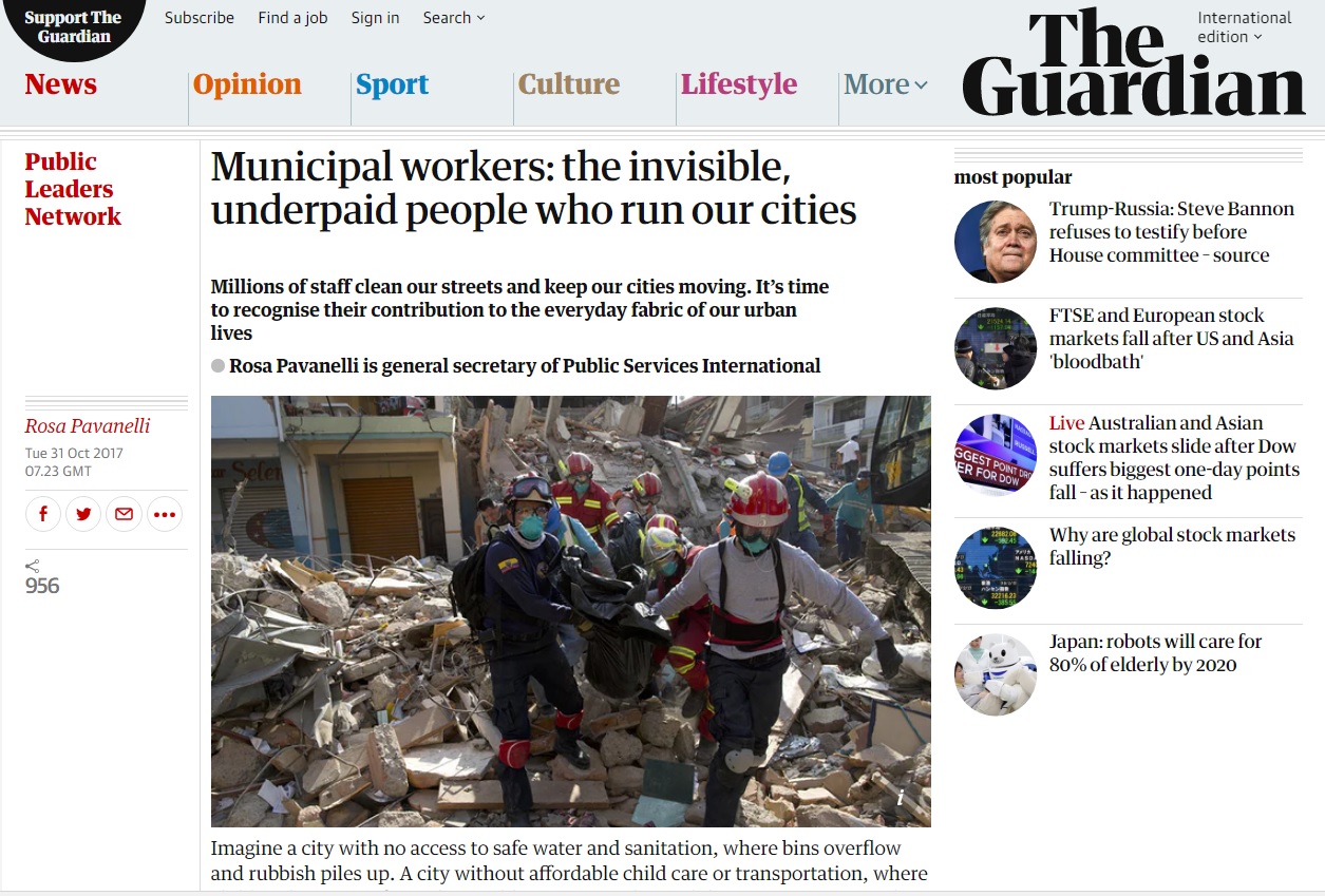 Desde el diario británico The Guardian, Rosa Pavanelli destacó la importancia de la ley impulsada por los municipales argentinos. La italiana, secretaria general de los trabajadores de servicios públicos, realzó mundialmente la conquista de la Fesimubo, la cual fue llevada al Congreso bonaerense por Hernán Doval, actual líder de los comunales de Avellaneda.