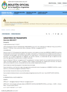 La norma que había impuesto la cartera que conduce Guillermo Dietrich, quedó sin efecto luego de ser reemplazada por 883/17. Los sindicatos Unión Ferroviaria, liderado por Sergio Sasia; La Fraternidad, de Omar Maturano, ASFA (Señaleros) de Enrique Maigua; APDFA, de Adrián Silva celebraron la medida luego de que se generaran “interpretaciones encontradas”.