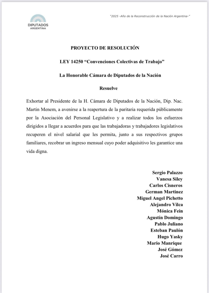 El respaldo institucional llegó desde ambas cámaras del Congreso. Senadores como Juliana Di Tullio, José Mayans, Anabel Fernández Sagasti y Antonio Rodas presentaron un proyecto de resolución que exige la convocatoria urgente a la paritaria. En Diputados, la lista es amplia y diversa: Sergio Palazzo, Vanesa Siley, Carlos Cisneros, Germán Martínez, Alejandro Vilca, Mónica Fein, Hugo Yasky, Miguel Pichetto, entre otros, manifestaron su apoyo al reclamo gremial del gremio verde, en pos de mejorar las condiciones de vida de los trabajadores.