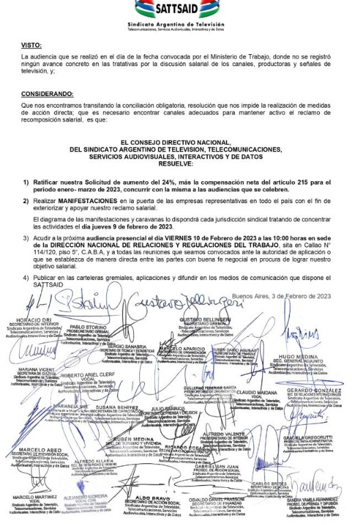 Tras un nuevo fracaso en la audiencia convocada por la cartera de Trabajo en las negociaciones salariales que comprende a los trabajadores de canales, productoras y señales, y bajo los términos que establece la conciliación obligatoria, que impide la realización de acciones directas, el gremio decidió una nueva acción para continuar visibilizando el conflicto y reclamar un aumento acorde a las necesidades del sector.