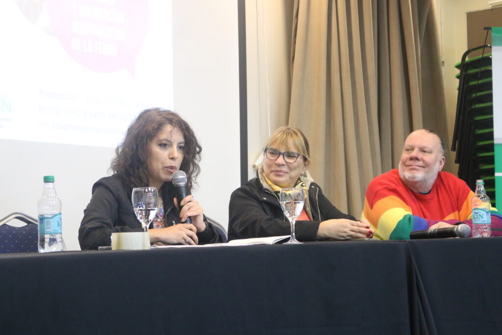 Moderaron la mesa las integrantes de la comisión directiva de la FEDUN, Patricia Ivanchi (secretaria de Género), y Daniela Antista (secretaria Adjunta). También estuvo presente el secretario general, Daniel Ricci, que les agradeció a todas las presentes y celebró la realización del congreso.