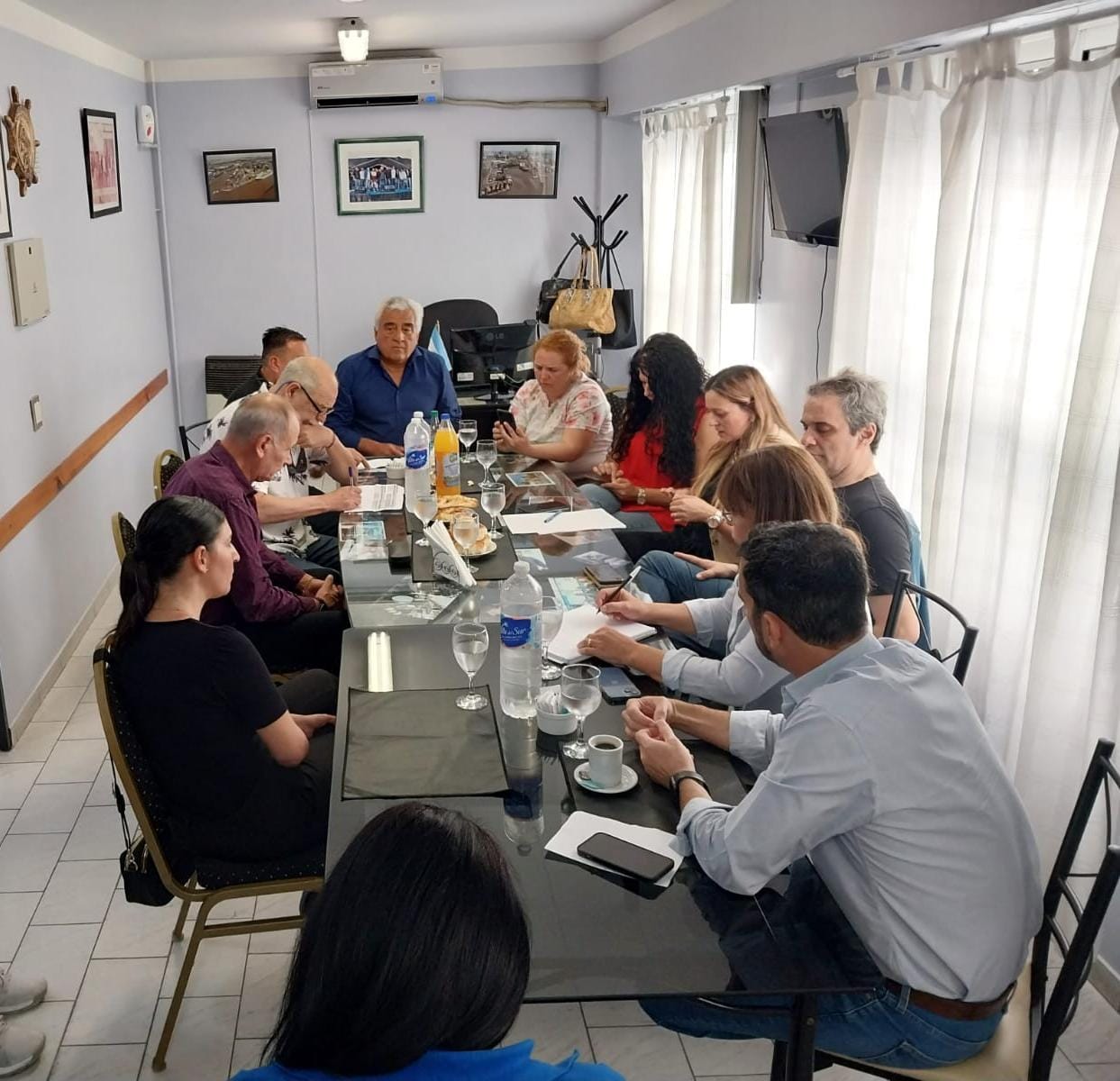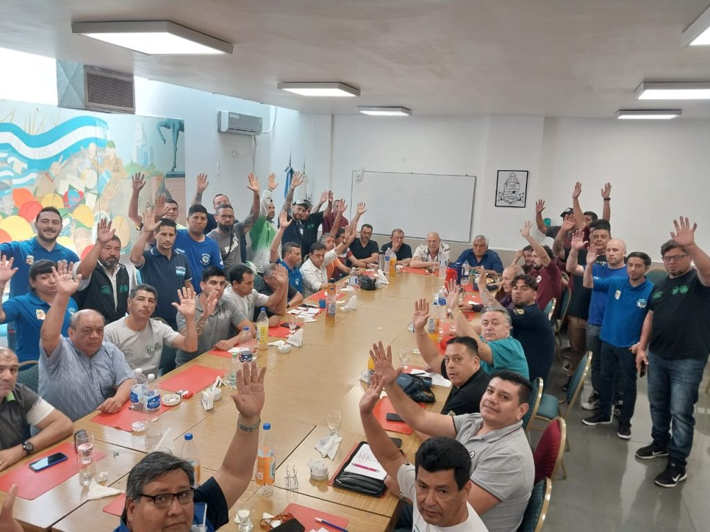 Además de Roberto Coria (SGyMGM), participaron del encuentro Raúl Lizarraga (SEAMARA), Fabián del Rio (AAEMM), Osvaldo Giancaspro (SCEP), así como delegados y paritarios de cada uno de estos gremios portuarios.