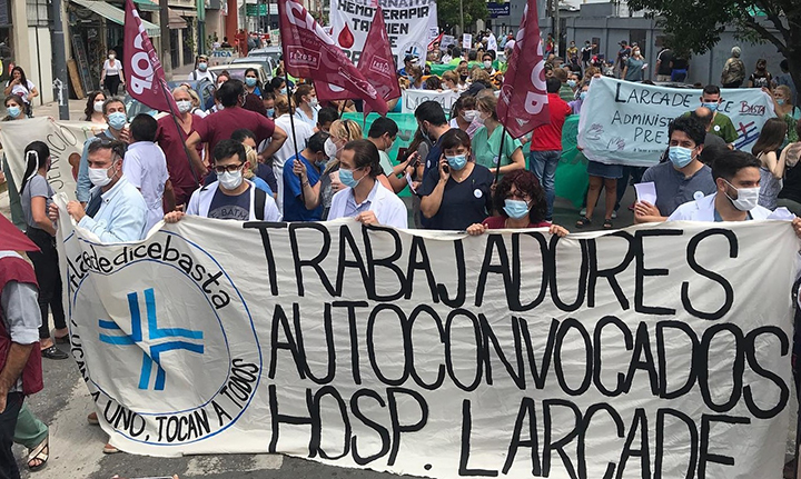 Desde el gremio señalaron que el intendente Méndez de San Miguel (Juntos por el Cambio) “continúa la persecución contra los dirigentes gremiales del Hospital Larcade” y detallaron que “después de desplazar servicios enteros extramuros aprovecha la emergencia sanitaria para sacar del hospital a los dirigentes de la APUHL y a los jefes que no aceptan ser policías de los trabajadores”.