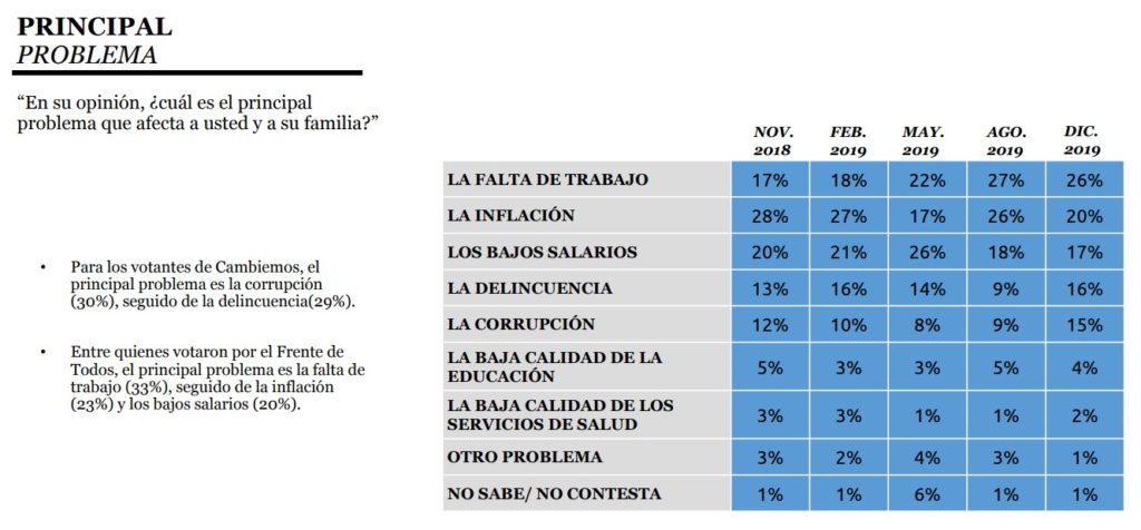 Una encuesta privada reveló que la falta de empleo en el Gran Buenos Aires ha desplazado a la inflación durante el último año y hace un repaso también por la realidad económica de los votantes de Mauricio Macri y de Alberto Fernández.
