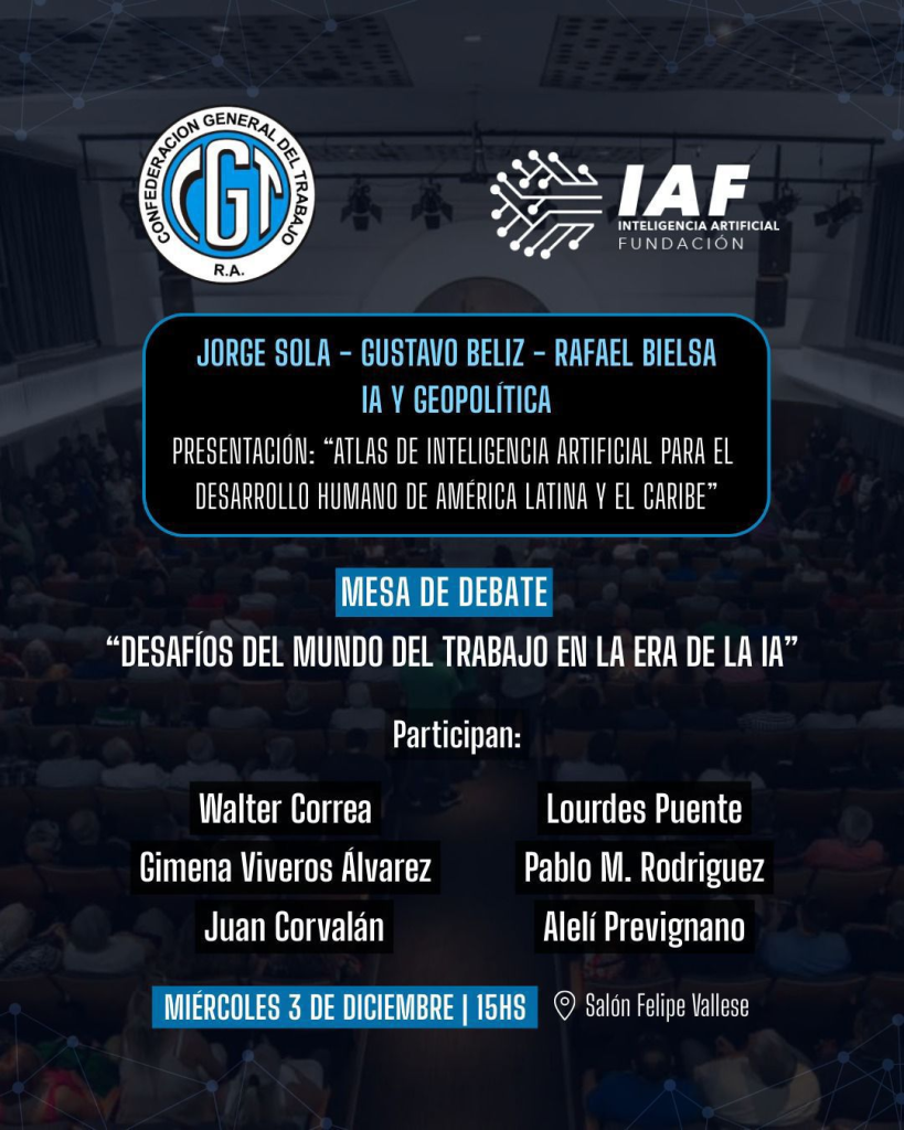 🔵Con la presencia del secretario general Jorge Sola, Gustavo Beliz y Rafael Bielsa, la CGT y la Fundación IAF presentan el “Atlas de Inteligencia Artificial para el Desarrollo Humano de América Latina y el Caribe” y encabezan una jornada destinada a discutir cómo la IA redefine el trabajo y los desafíos del sistema laboral🔴