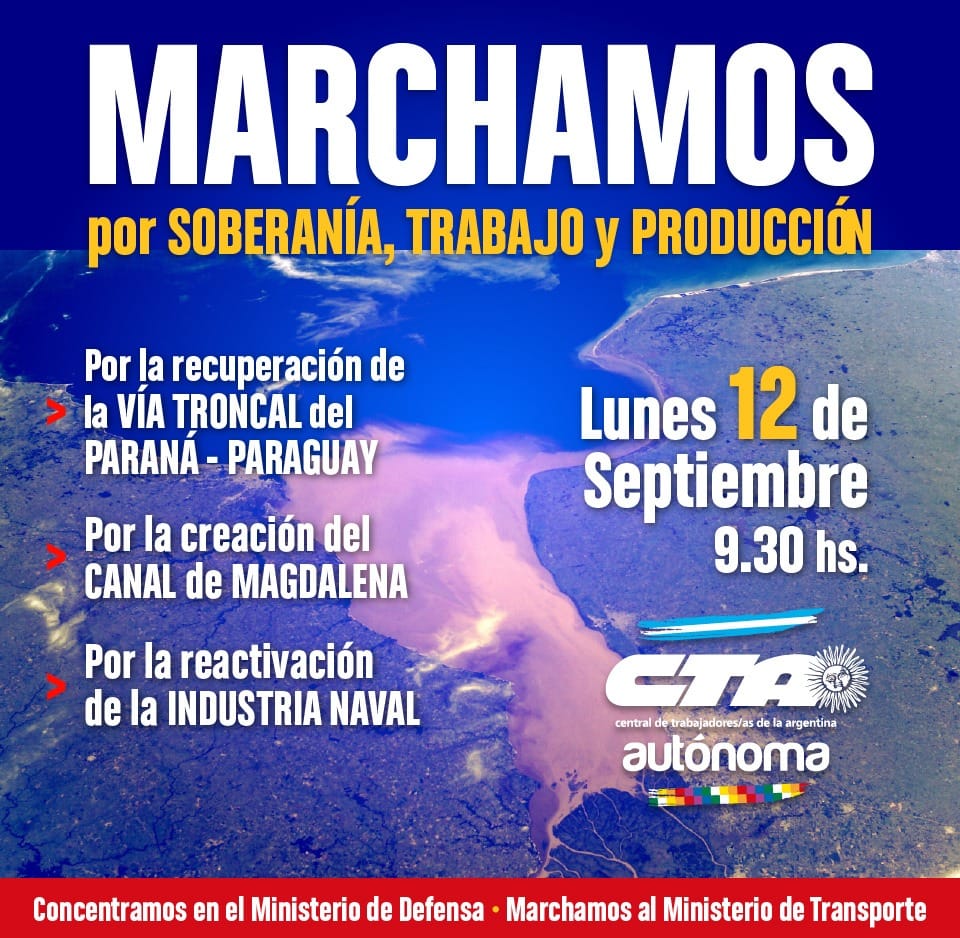Este lunes 12 habrá un intenso tránsito alrededor del Ministerio de Transporte de la Nación a raíz de la movilización que encara la CTA Autónoma en reclamo de soluciones en la vías navegables como la red Troncal del Paraná.