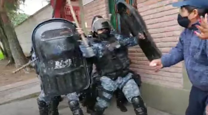 “Una vez más, el gobernador Gerardo Morales manda a su policía brava a reprimir brutalmente a los pacíficos pobladores”, criticó la CTA -T- en relación a familias que se negaron a la ocupación “militarizada de un espacio comunitario dedicado al deporte”. “Morales insiste que la gente se niega a que él construya una escuela en el lugar, pero el pueblo le responde que quieren ambas instalaciones y no una en lugar de la otra”, explicaron desde la central.