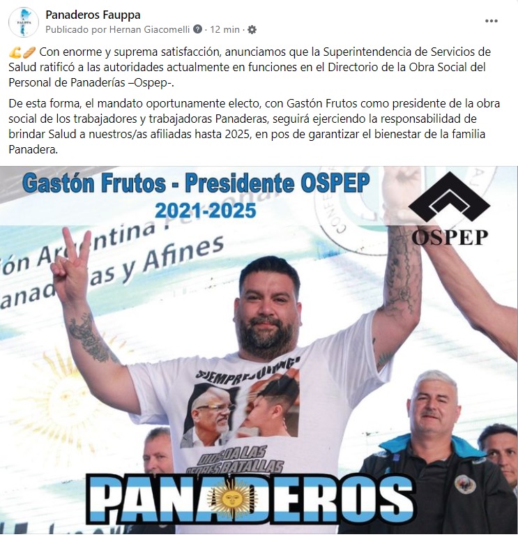 En todo ese camino, la Super de Salud emitió lo que en Boedo 168 esperaban con ansias, que es la ratificación oficial de Frutos como presidente de Ospep, la obra social del gremio.