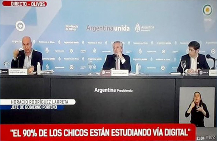 Durante la conferencia de prensa oficial que informó la continuidad de la cuarentena, el jefe de Gobierno de la Ciudad Horacio Rodríguez Larreta afirmó que “el 93 % de los chicos está en contacto digital con sus docentes”. Ante las declaraciones del funcionario, desde el gremio que conduce Eduardo López, salieron al cruce de los dichos y señalaron que: “Nuevamente el jefe de gobierno utiliza datos que solo existen en la construcción de su relato”.
