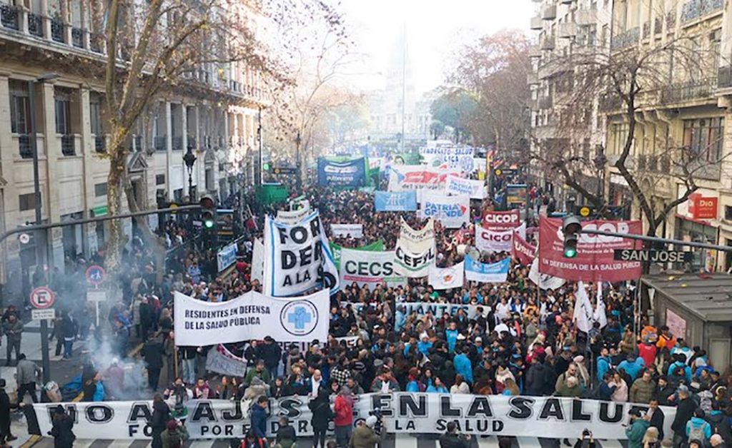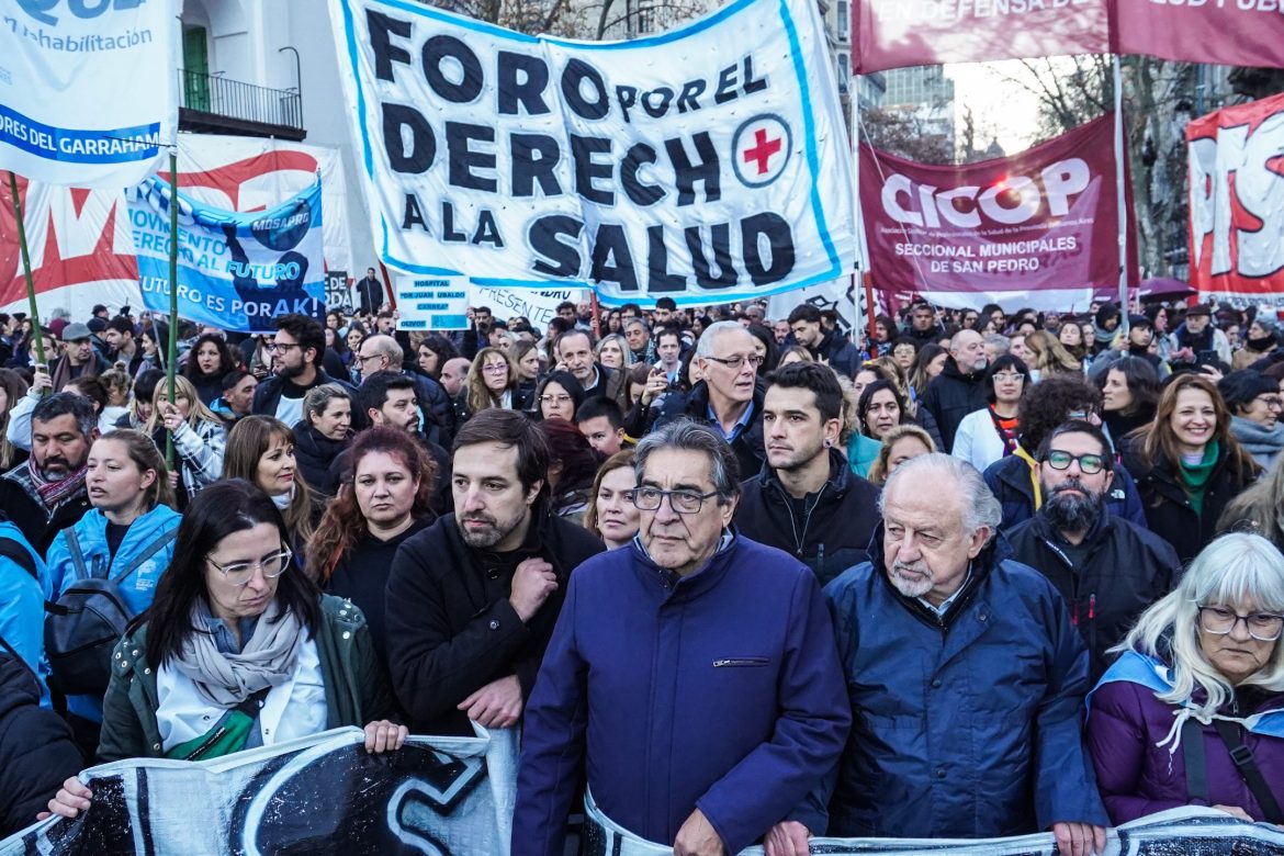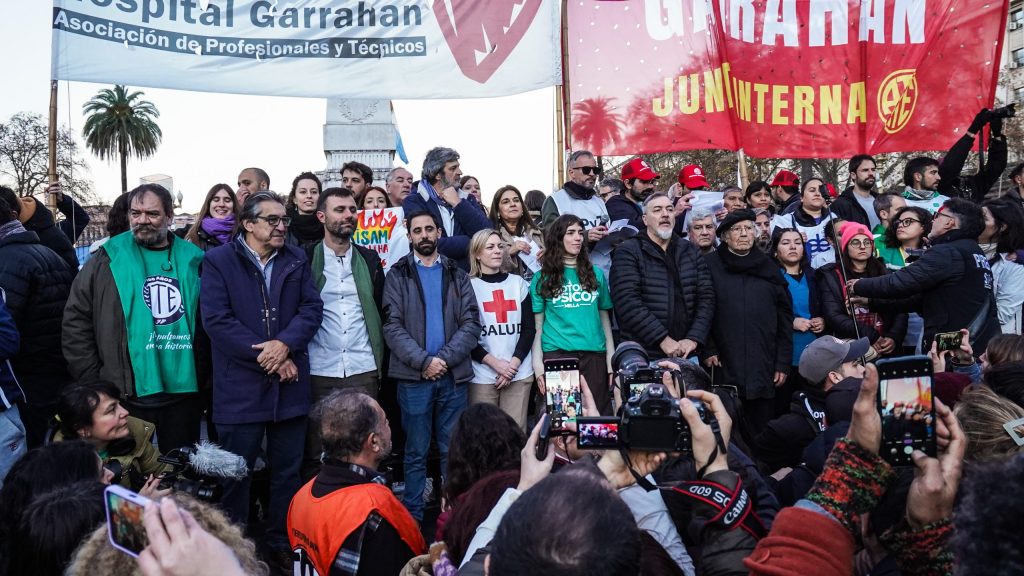 Desde la movilización, otro de los que se pronunció fue Jorge Yabkowski Secretario General de FESPROSA: “Decenas de miles de ciudadanos nos reunimos hoy en una gran coalición política y social en defensa del Garrahan, del Posadas y de todas las luchas por la salud pública y sus trabajadores. Estamos felices de haber encontrado coincidencias en una gran diversidad de pensamientos reunidos en un documento único que dice ´basta de despidos en salud, basta de precarización laboral, basta de salarios a la baja, basta Milei, basta Lugones´, queremos una salud pública para todos”.
