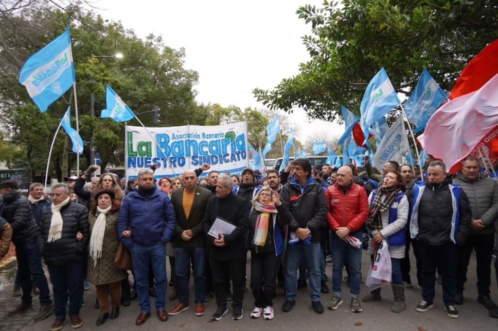 Con Sergio Palazzo a la cabeza, los bancarios movilizaron ante la falta de respuesta a todos los reclamos que viene haciendo desde el gremio y continuando con el plan de acción gremial dispuesto por los Cuerpos Orgánicos del Sindicato y luego de realizar jornadas con asambleas en las sucursales del banco en todo el país. Junto a Palazzo, se marcharon trabajadores del Santander, la Comisión Gremial Interna del Banco Supervielle, Seccional Bs As, entre otros, para acompañar la lucha de los compañeros.