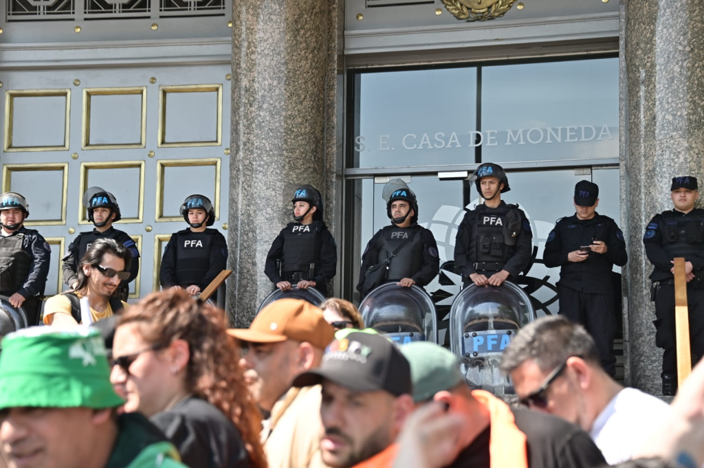 ATE llevó a cabo una protesta muy nutrida frente a la Casa de Moneda en respuesta al anuncio de su cierre y la amenaza de despidos masivos. Rodolfo Aguiar, titular del gremio estatal, destacó la gravedad de la situación, advirtiendo que la posible clausura del organismo estatal sería el inicio de un conflicto mayor. «Cuando hicimos la medida de fuerza en los aeropuertos, el Gobierno habló de un paro salvaje. Este Gobierno no tiene ni idea de lo que es una huelga salvaje. Si cierra la Casa de Moneda, va a empezar a darse cuenta», manifestó durante la movilización.