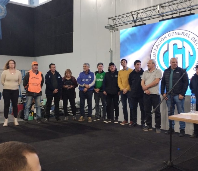 Luego se leyó el documento realizado por la Delegación Regional Neuquén de la CGT, titulado «Frente al Ajuste, Unidad Sindical», que ponderó la Unidad Sindical ya que “es un trabajo constante y permanente, que siempre lo hacemos solidariamente desde cada una de nuestras organizaciones”.