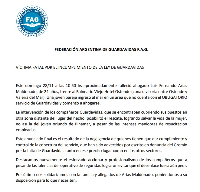 Cabe recordar semanas atrás se perdió la vida de una persona, que murió ahogada y que pese al enorme desempeño y profesionalidad de los guardavidas no pudieron salvarla. Los guardavidas tuvieron que correr más de 500 metros de playa, cubriendo dos puestos, para poder realizar el rescate. La falta de contratación de personal para cubrir todos los puestos de forma correcta, no solo genera triplicar esfuerzos, sino que pone en serio peligro la vida de la población.