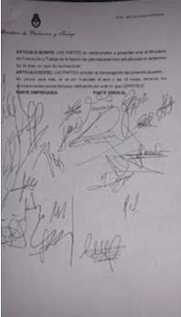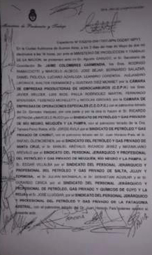 La reunión se realizó en la Secretaría de Trabajo de Nación, y contó con la presencia del Sindicato de Petroleros Privados, de empleados jerárquicos, gerentes de las compañías petroleras y funcionarios de la cartera laboral nacional, que lograron llegar a un acuerdo tras el estancamiento que sufrió la negociación semanas atrás, cuando las empresas petroleras se negaron a cumplir con el acuerdo firmado sobre fines del año pasado que establecía un incremento del 14,7 %.
