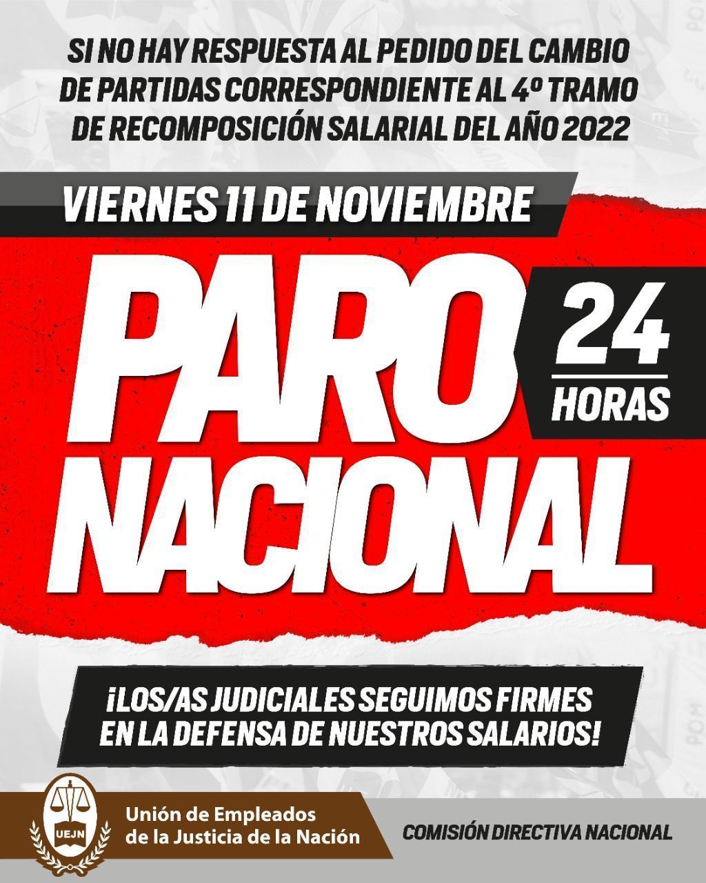 El 16 de noviembre se celebra el Día del Empleado Judicial y es cuando la UEJN volverá a las calles a festejar pero también reclamar a las calles de Buenos Aires y en cada una de las dependencias a nivel federal.