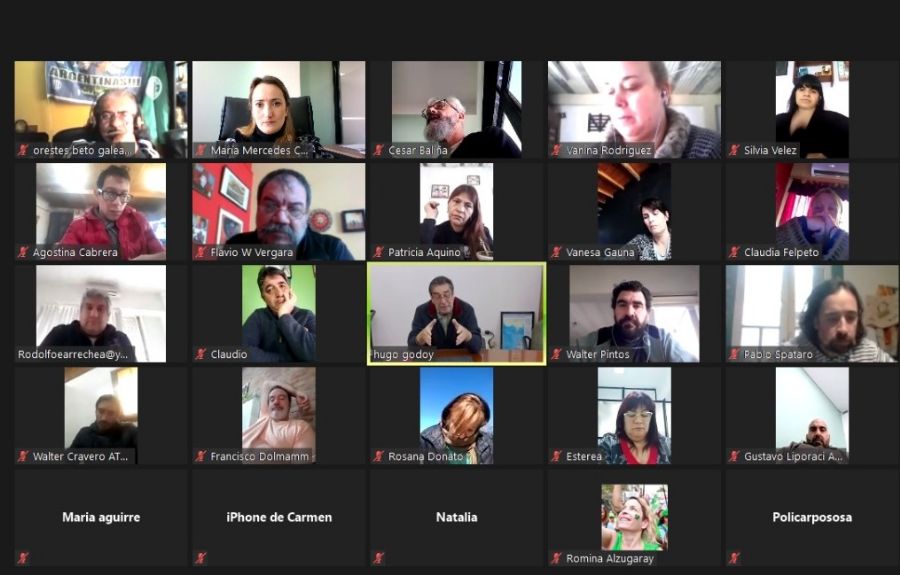 La teleconferencia estuvo encabezada por Hugo “Cachorro” Godoy, Secretario General del sindicato; y participaron dirigentes nacionales como Mercedes Cabezas, Secretaria de Organización; Estérea González, Secretaria de Finanzas; Flavio Vergara, Orestes Galeano y Rodolfo Arrechea del Equipo Nacional de Salud; Natalia Castesana, César Baliña, Pablo Spataro y Francisco Dolmann, entre otrxs. Por la provincia de Buenos Aires estuvo Vanina Rodríguez, Secretaria General Adjunta del CDP.