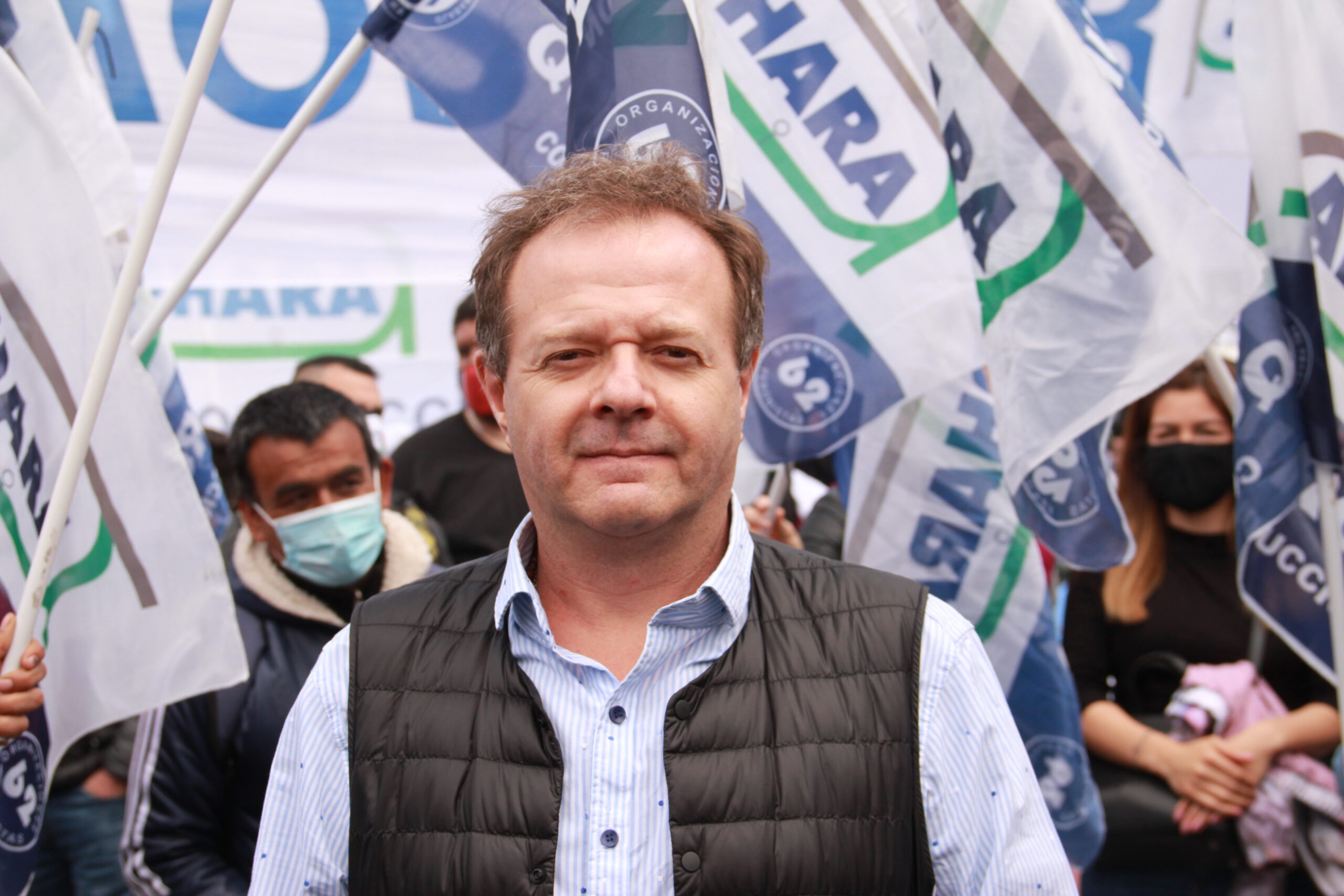 El secretario general de APHARA, en el marco de una movilización en el centro porteño. «Cómo puede ser que en el resto del país esté funcionando y acá no. ¿Qué nos diferencia?…Si hay Covid en todo el país”.