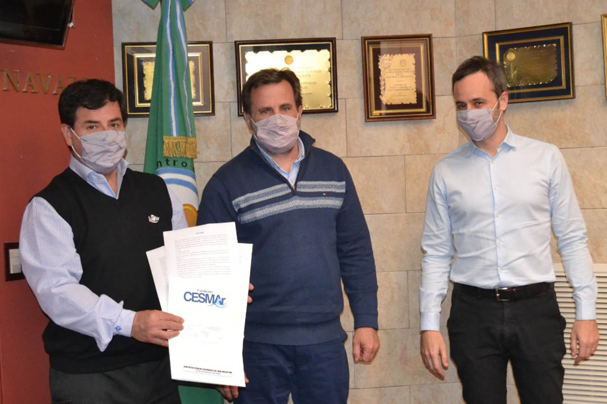 Miembros del Centro de Jefes y Oficiales Maquinistas Navales, encabezado por su Presidente Eduardo Mayotti, realizaron un encuentro con el Secretario General de la Asociación Argentina de Capitanes Pilotos y Patrones de Pescam, Jorge Frías para la firma de un acuerdo sobre capacitación.