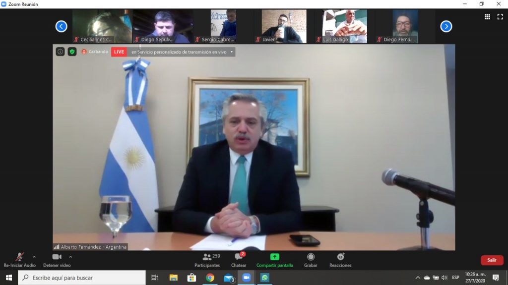 “Nos hemos impuesto la obligación de preservar las empresas y las fuentes de trabajo, y que aquel que esté trabajando tenga la seguridad de que el Estado ayuda a pagar los sueldos a su empleador”, y pidió: “Estemos más unidos que nunca para encarar el futuro con mucha fuerza para poder poner de pie a la Argentina otra vez”.