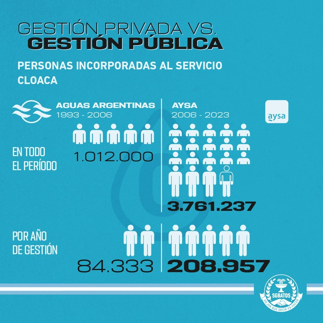 El dirigente sindical destacó el papel crucial de AySA, empresa de agua y saneamiento, que presta servicio a una significativa porción de la población argentina. Desde su gestión estatal en 2006, AySA ha logrado importantes avances, duplicando e incluso triplicando las cifras de personas incorporadas al servicio de agua y saneamiento en comparación con la gestión privada anterior.