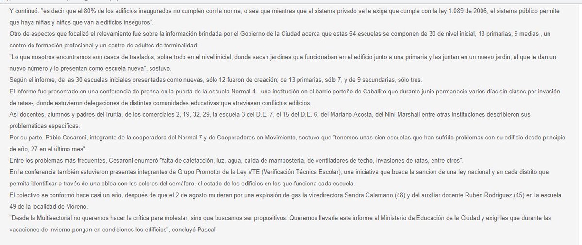 La nota censurada, denunciaba el situación en la que se encuentran las escuelas de CABA, las condiciones de inseguridad edilicias de la escuela pública, poniendo en riesgo la integridad física de los niños.