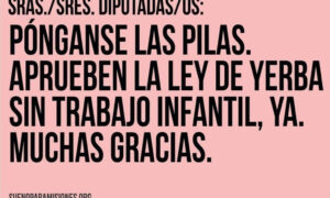 «Diputados y diputadas #PonganseLasPilas», la campaña que exige la ley contra el trabajo infantil en la Yerba 18 mayo, 2022por Sonido Gremial PRESENTAN DOCUMENTAL Y PROYECTO DE LEY SOBRE TRABAJO INFANTIL 18 abril, 2016por Sonido Gremial