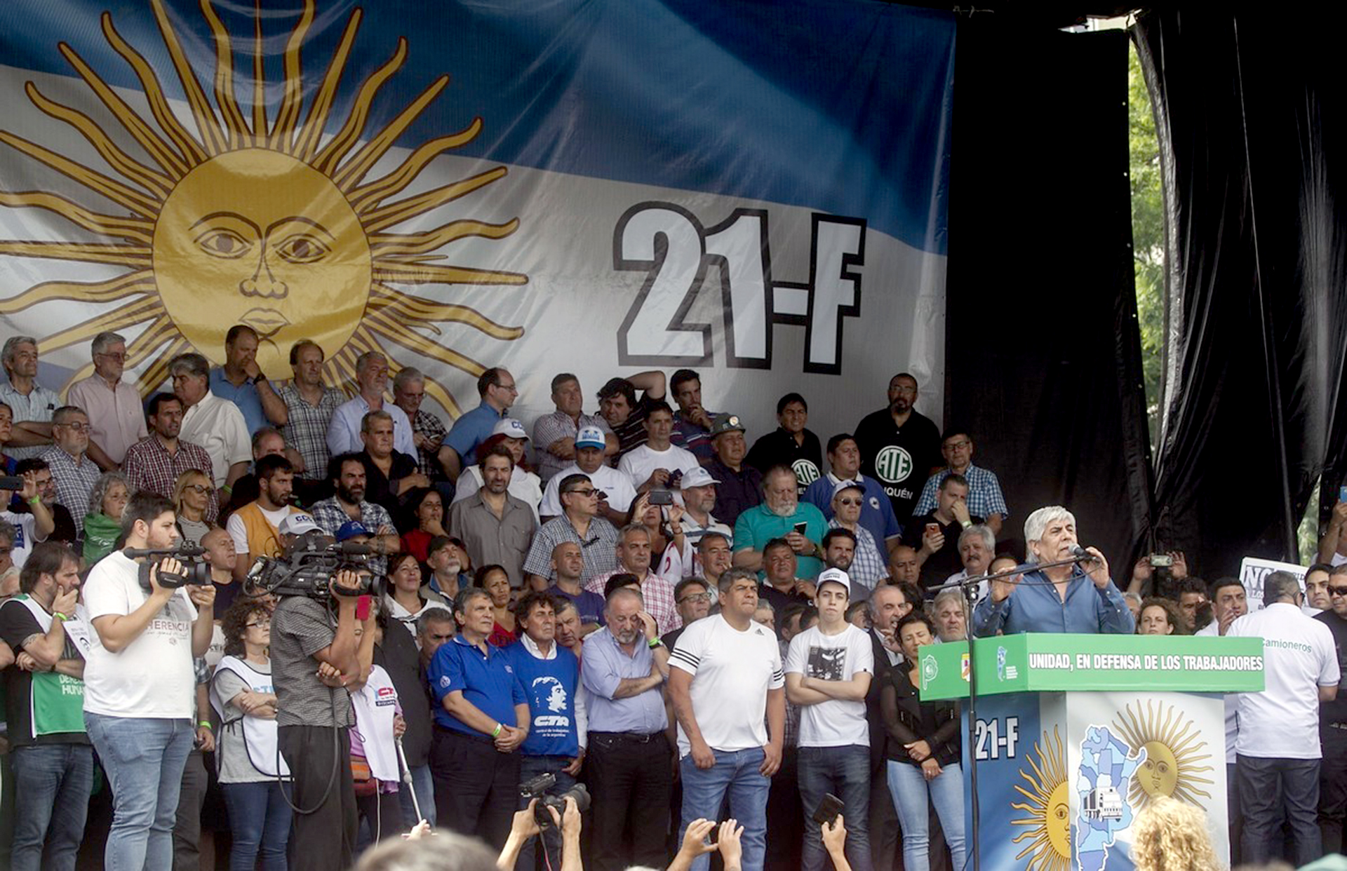 Con mas de 300 mil personas colmando la 9 de Julio, se llevó adelante el acto de Camioneros. Aliados que puede ser una pata fuerte para futuras movilizaciones se mostraron cerca de la primera linea del escenario, al lado de Hugo Moyano.