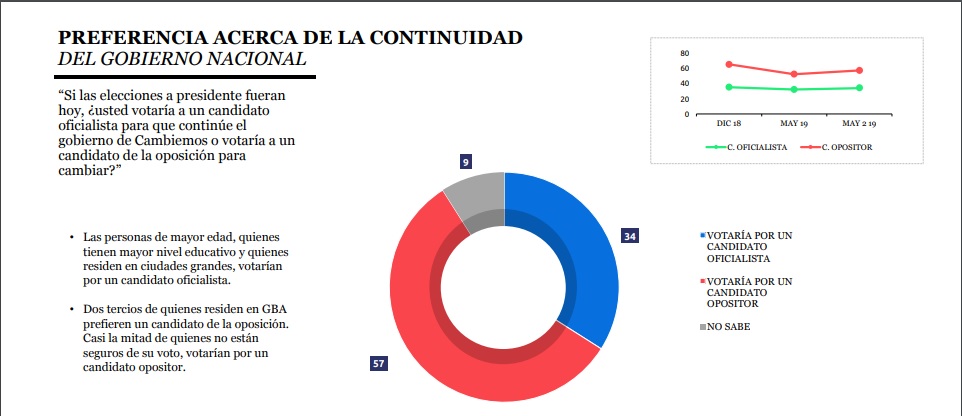 El oficialismo podría alcanzar el 34% de intención de voto si sumara a la gobernadora bonaerense a la candidatura a vice-presidenta, aunque esta opción si bien no fue descartada en su totalidad, le haría perder eventualmente la provincia de Buenos Aires, único territorio donde Cambiemos no tiene tanta desaprobación, aunque en líneas generales, el panorama se le complica cada día más.