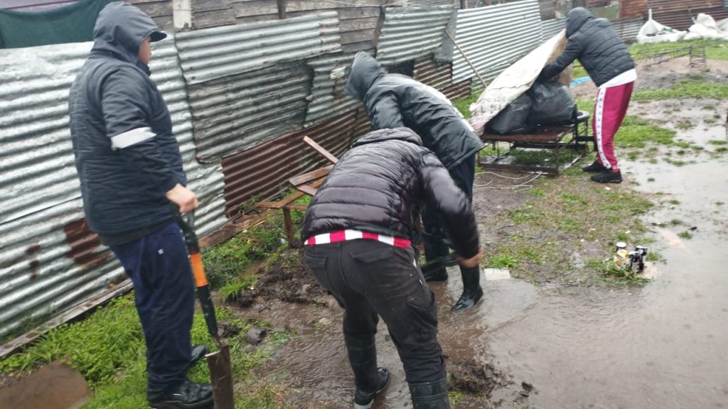 Las cuadrillas de trabajadores, que milita en la agrupación de Tobar, liberadas por la patronal por las condiciones climáticas, decidieron salir a ayudar en vez de quedarse con sus familias. Comenzaron los trabajos de asistencia desde muy temprano, preparando la sede del gremio como un refugio para albergar a las familias que ellos mismos fueron a buscar en micros, combis y automóviles personales. Camas, frazadas, y un plato de comida caliente se pusieron a disposición de los damnificados. También se organizaron para comenzar un trabajo hídrico en los diferentes barrios, despejando y limpiando los desagües y bocas de tormenta para que la bajada del agua sea más rápida.