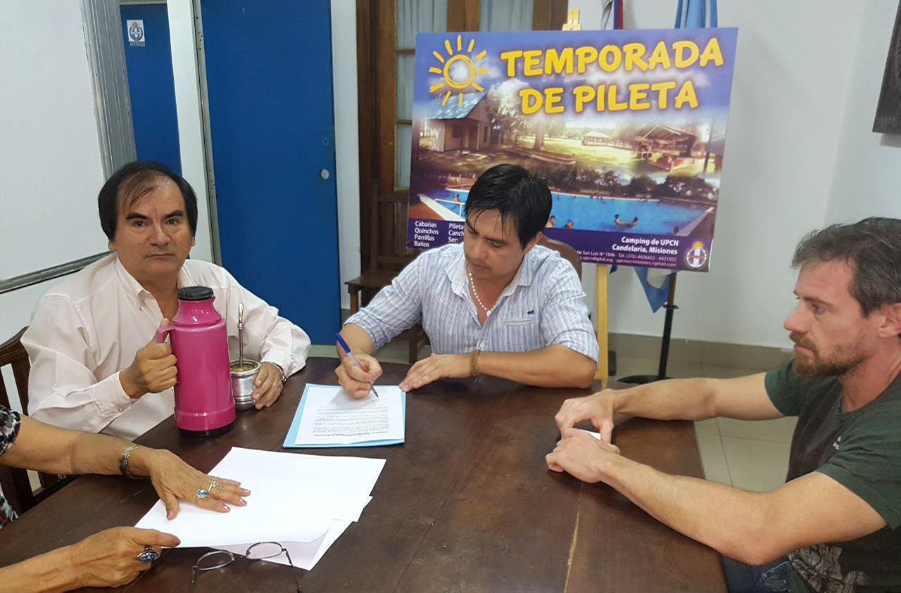El Secretario General de UPCN Regional Misiones, Ricardo Ocampo, UPCN Regional Misiones y distintos miembros de la Comisión Directiva del gremio a nivel provincial, firmaron un convenio con el camping de Candelaria para que los afiliados de diferentes organismos estatales utilicen de los servicios sociales de verano sin costo.