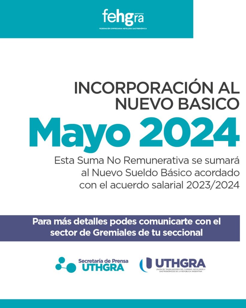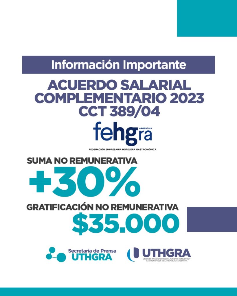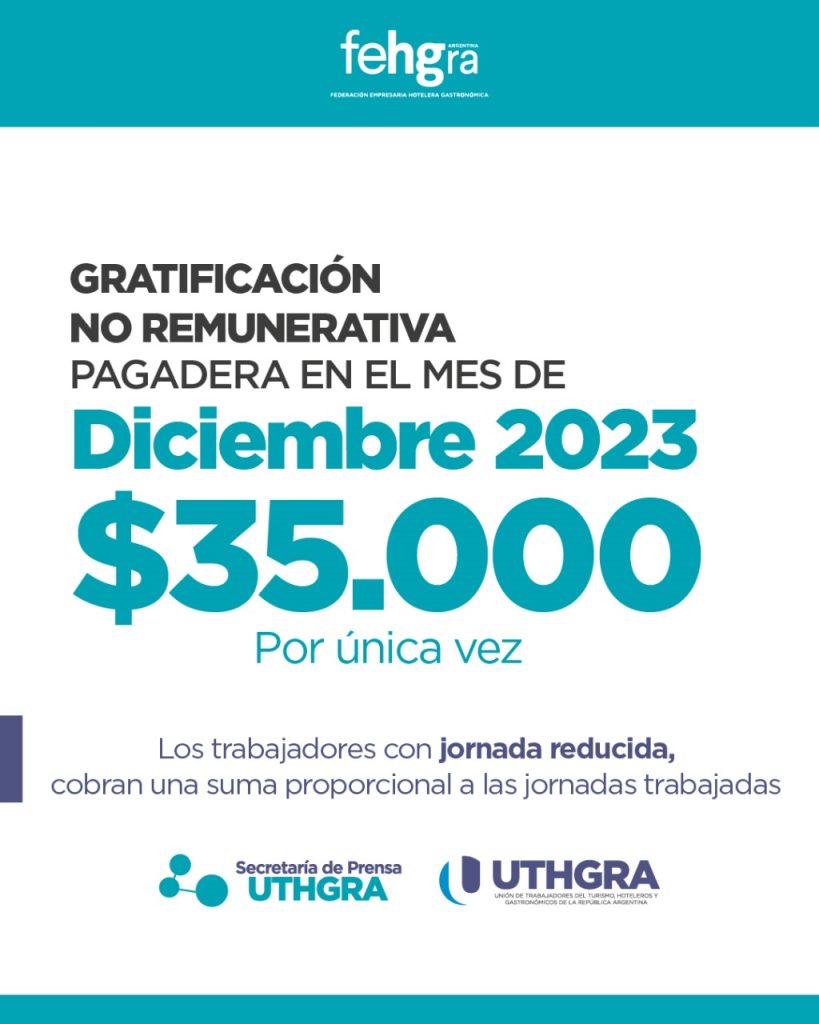 Barrionuevo y la comisión directiva de UTHGRA anunció que además del bono acordado, los y las trabajadoras del sector recibirán en un plazo no mayor al 15 de enero de 2024 un el pago único de $35.000.