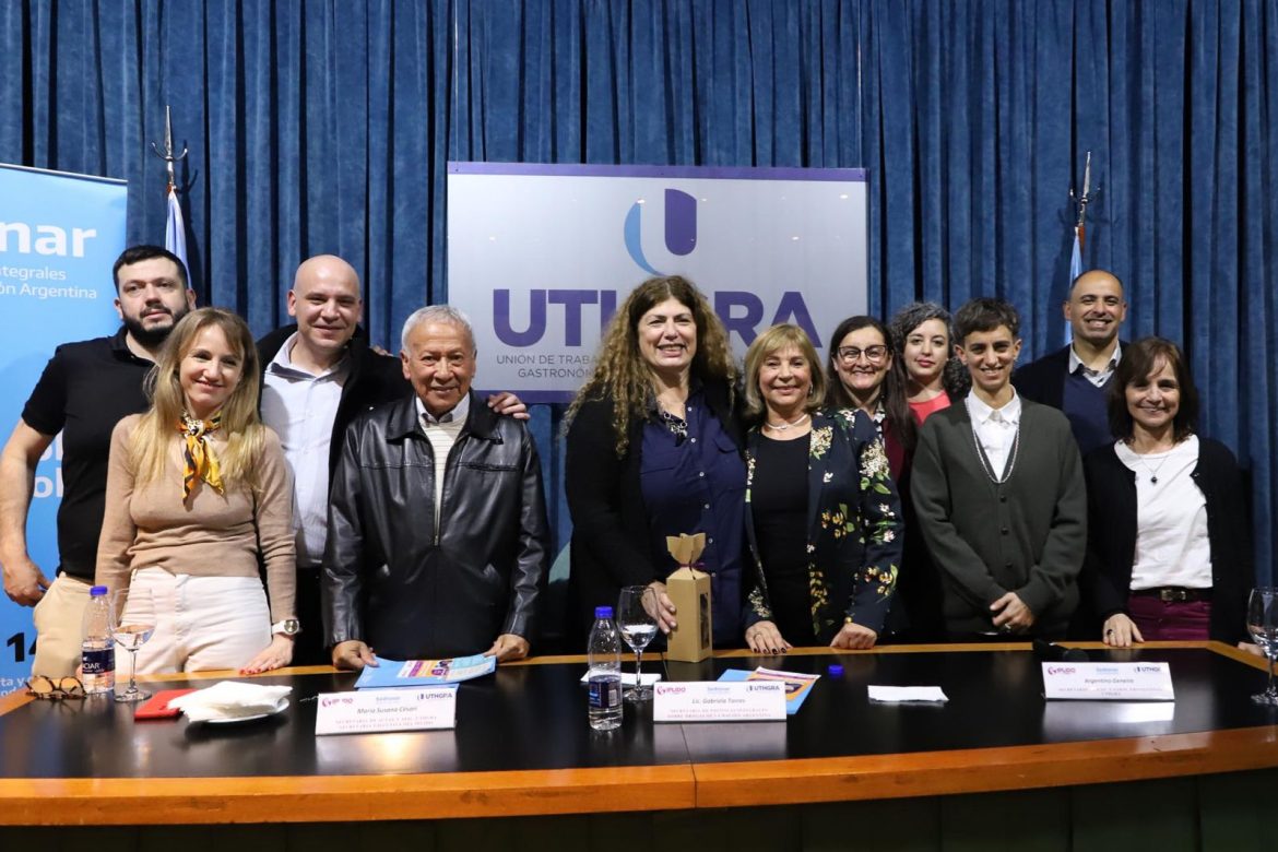 UTHGRA continúa la senda de la capacitación y esta semana le tocó el turno a la entrega de certificados en el marco del Programa de Prevención de Consumos Problemáticos en los Ámbitos Laborales, preparación que fue dictada en un convenio entre el gremio y la Secretaría de Políticas Integrales sobre Drogas de la Nación Argentina –SEDRONAR-. Susana Césari, secretaria ejecutiva del IPLIDO junto a Gabriela Torres, titular del organismo estatal, fueron quienes entregaron los comprobantes de asistencia a los delegados Gastronómicos.