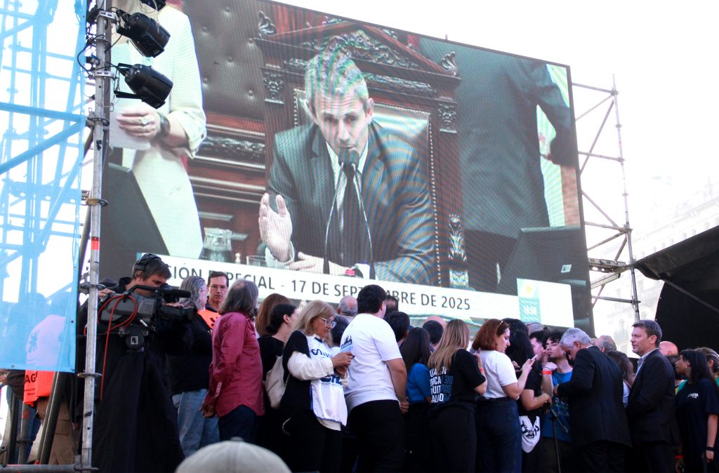Hugo “Cachorro” Godoy celebró la masiva movilización frente al Congreso por su capacidad de defender la salud, la educación y la democracia. Según el dirigente, esa presión social fue la que “abrió el debate en profundidad dentro del Congreso” y permitió decir “basta a los vetos, basta a los DNU”. En ese marco, advirtió: “Hoy es un día de victoria para el pueblo argentino y para decirle basta a un gobierno neofascista que se quiere instalar. No lo vamos a permitir”.
