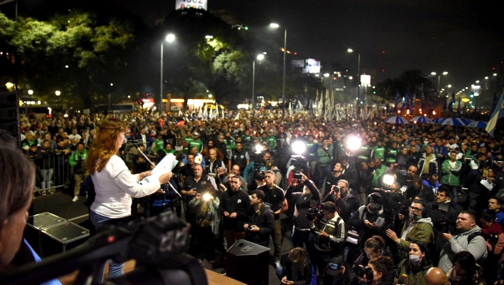 Se movilizaron miles de personas desde la intersección de Av. Independencia y Av. 9 de Julio hasta las puertas del Ministerio de Desarrollo Social, donde frente a la imagen de iluminada de Evita, apostada en el ministerio como custodia de los desprotegidos de la patria, se realizó un acto homenaje con la palabra de los referentes sindicales.