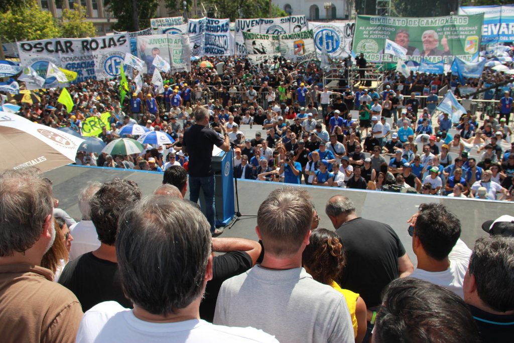 Sobre el escenario montado en Plaza de Mayo y con una multitud ya desconcentrada por las diferentes arterias portañas, Juan Pablo Brey analizó el alcance político de la movilización y remarcó la necesidad de una respuesta por parte del arco sindical frente al avance del Gobierno con la reforma laboral, proyecto que logró dictamen en el Senado pero que las negociaciones dilataron hasta febrero.