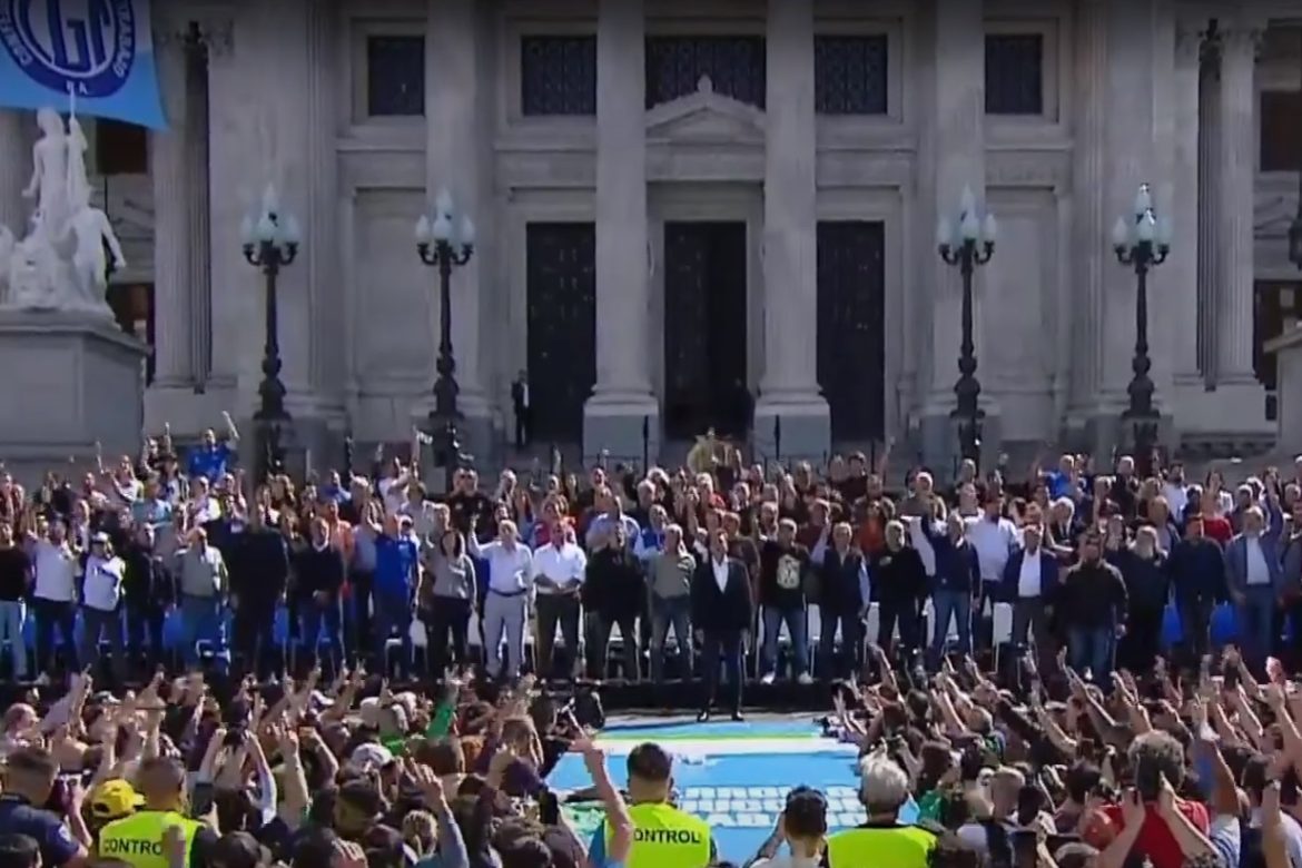 Video. Massa acompañado por todos los dirigentes gremiales y ante una multitud de Trabajadores convocará «a un Gobierno de unidad nacional»